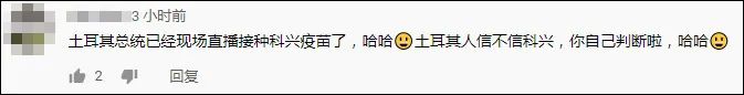 有人就提到了土耳其總統埃爾多安方才接種科興疫苗。